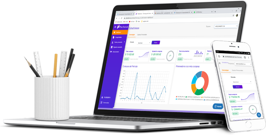 Plusfactura ayuda a los contadores a ser mas eficientes reduciendo su carga de trabajo operativa hasta en un 80%. Usa la plataforma para descargar los comprobantes electrónicos , cumplir con las obligaciones tributarias, realizar trámites de devoluciones de Impuestos y mucho más.