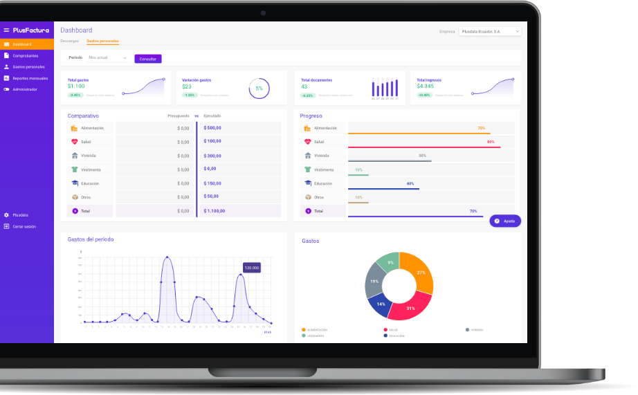 Gracias a nuestros gráficos estadísticos, usted podrá ver en tiempo real el comportamiento de sus gastos y comparar con tu presupuesto, ahorrando tiempo y dinero.